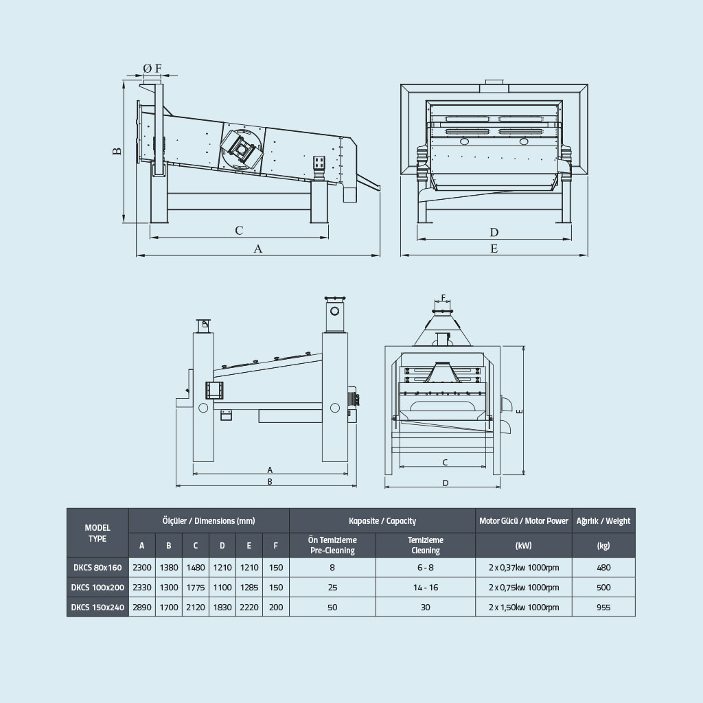 Tarım ürünleri içerisinde bulunan toz, kaba parça, çöp, saman vs. maddelerin temizlenmesinde kullanılan bir makinedir. Sadece ön temizlik için tasarlanmış bir makinedir. Zemine sabit olarak çalışır.