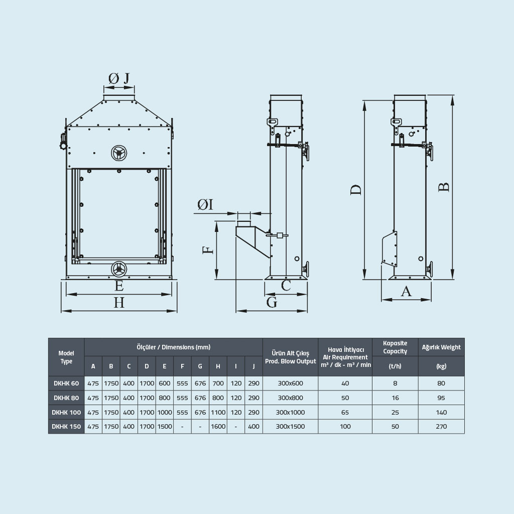 Tahılların içinde bulunan hafif taneli yabancı maddelerin ve tozun hava akımı ile temizlenmesini sağlar.